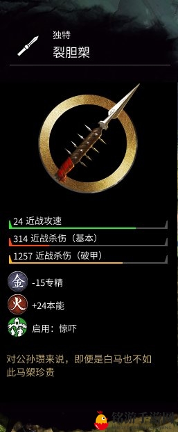 在《全面战争:三国》的烽火战场上,公孙瓒这位英勇的白马将军,手持其独特的金色武器——裂胆槊,威震北胡,虽不及吕赵马关的传奇武器,却也足以独步江湖。今天,就由玩家“郁金香之荣耀”为大家详细解析这款神兵利器的属性,让我们一起揭开裂胆槊的神秘面纱。